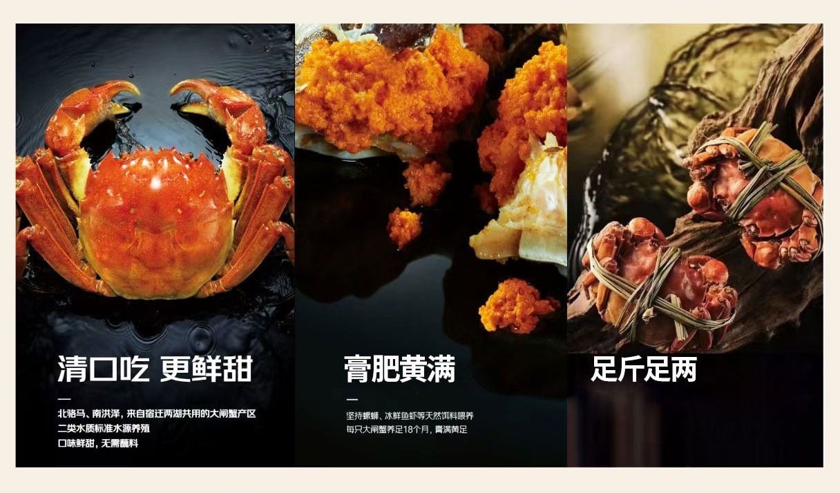 “宿有千香·霸王蟹” 来自西楚霸王项羽的故乡,体格健硕。经过水清湖净的洪泽湖与骆马湖的蕴养,成就了 “膏肥、黄满、肉鲜、味甜” 的绝佳品质,是为 “宿有千香·霸王蟹”。